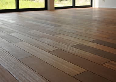 「屋内土足歩行対応」天然木フローリング - 屋外デッキやサイディングなどで数多く実績のあるセランガンバツを使ったフローリングですので、店舗や住宅の屋内土足歩行でも安心して使用できる高品質、高耐久商品です。