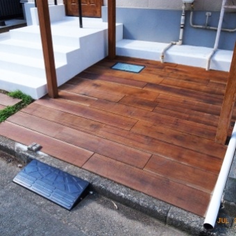 従来の枕木のイメージとは少し異なり、玄関やガーデンファニチャーなど綺麗目に仕上げたい場面でも使っていただきたい製品です。